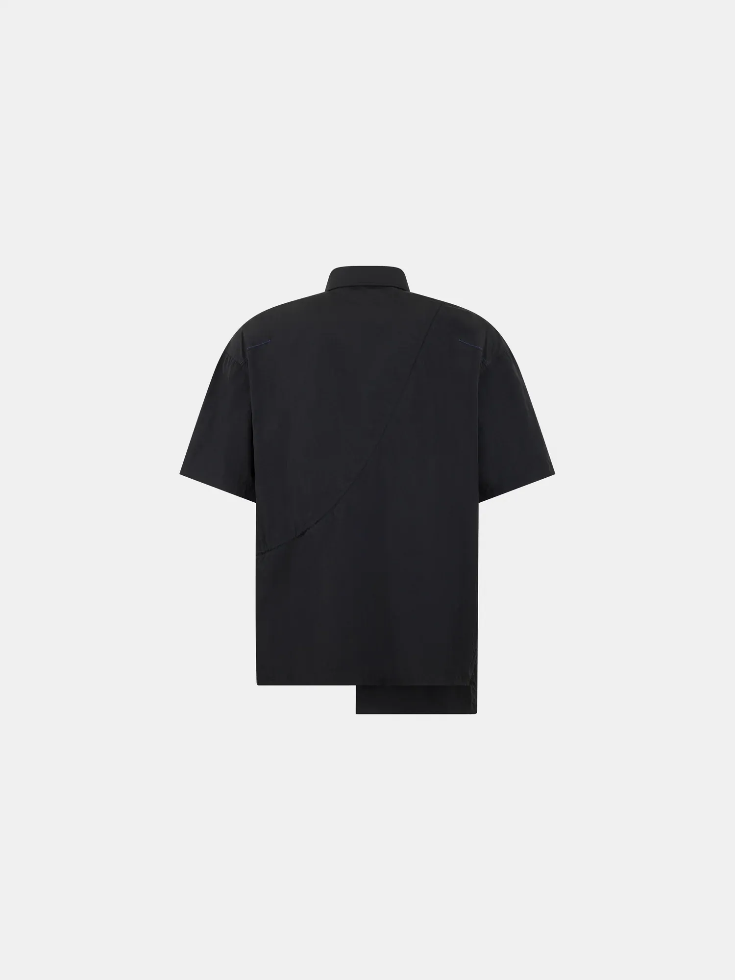 Relaxed-fit short-sleeve recycled nylon shirt. Drawcord channels throughout allow the wearer to adjust the garment’s shape and silhouette.
