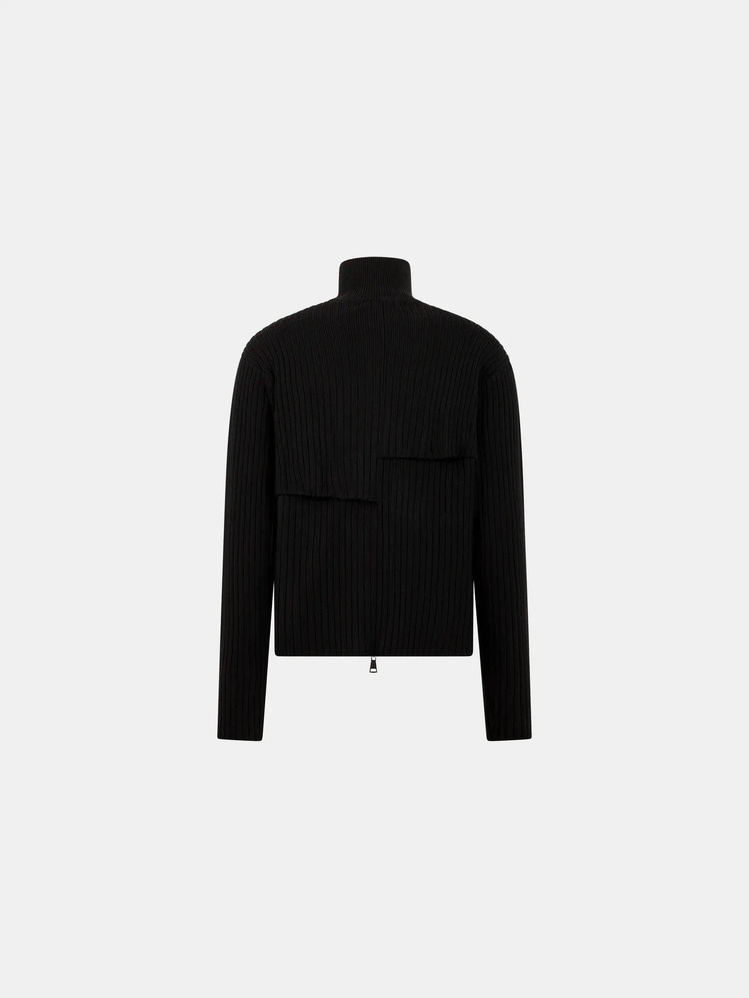 Regular-fit zip-through knitted top with a high neck, constructed from a series of overlapping asymmetric panels, secured at the seams.