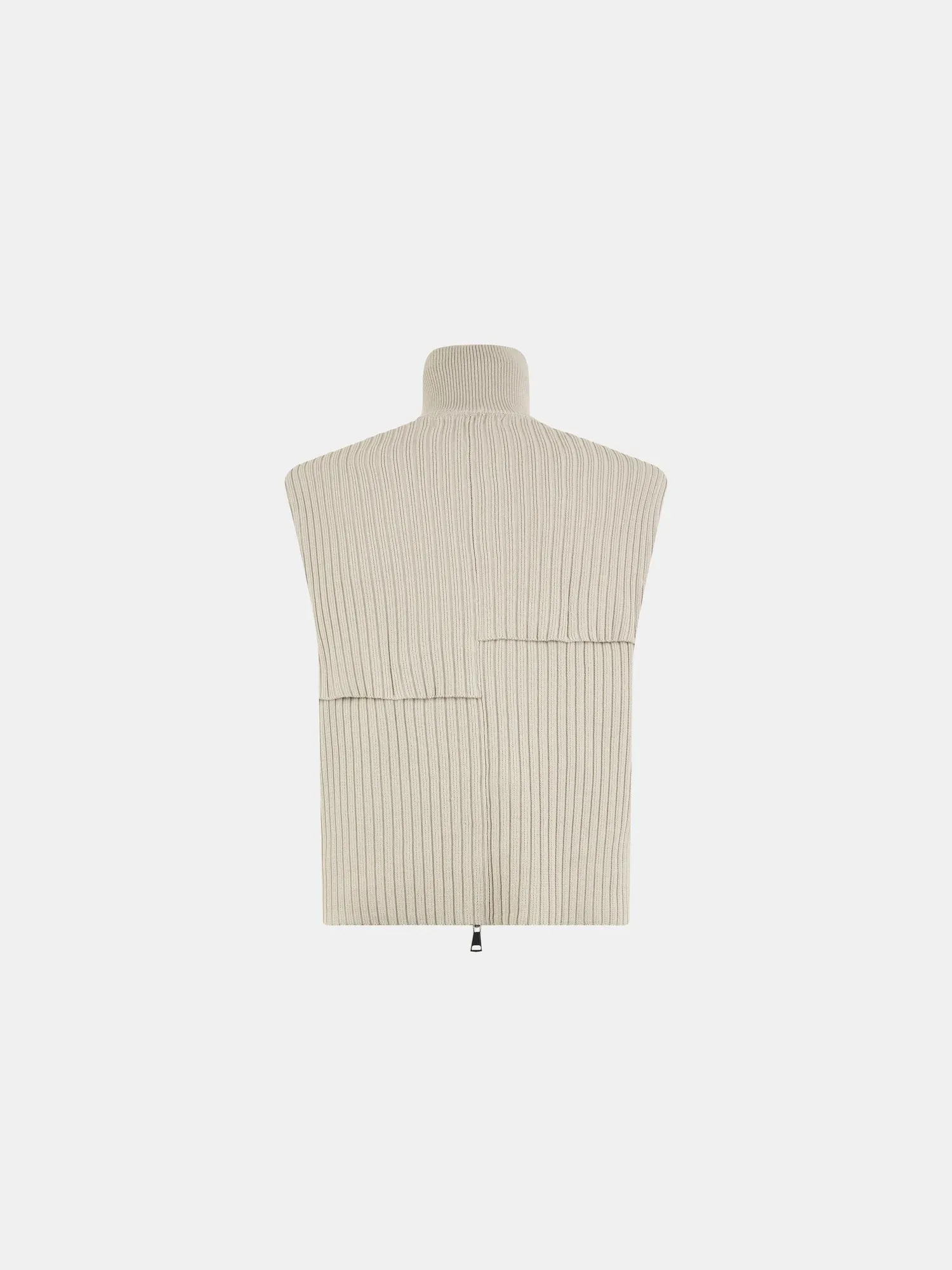 Regular-fit zip-through cotton knitted vest with a high neck, constructed from a series of overlapping asymmetric panels, secured at the seams.